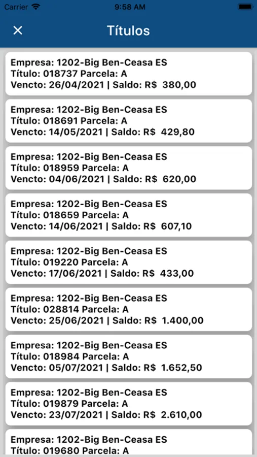 > Listagem de relatórios de posição de clientes e consultas a títulos vencidos e a vencer. Permitindo impressão de boletos e envio de cobrança.