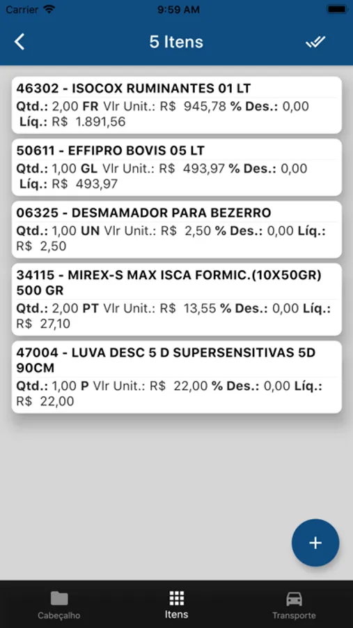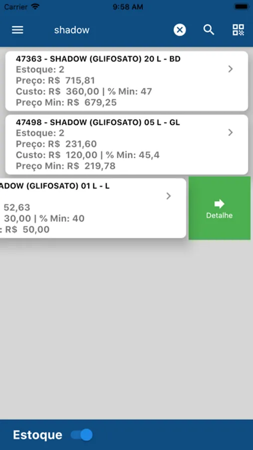 > Inclusão direta por código de barras com a câmera do smartphone.