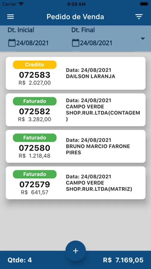 > Inclusão / alteração / exclusão de pedidos conforme permissões no ERP.