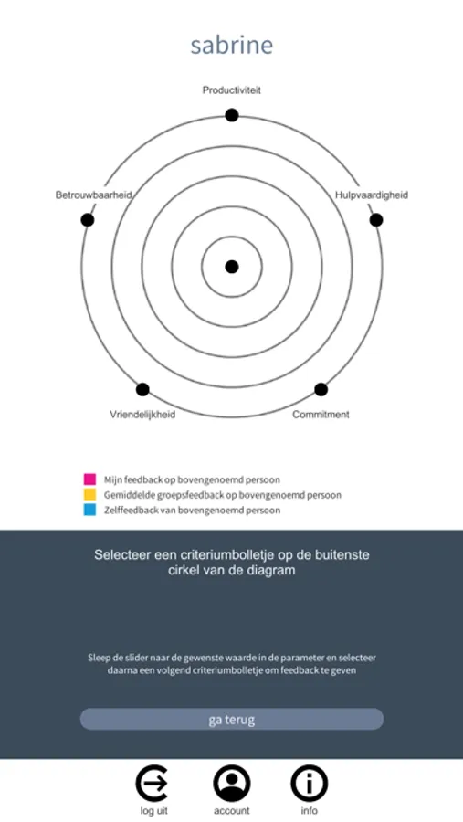 feedback op uzelf en die van een ander groepslid wordt middels een lijn in verschillende kleuren