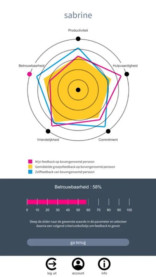 wordt getoond. Hierdoor kunt u zien of de groep anders over u denkt dan uzelf. Zit daar verschil