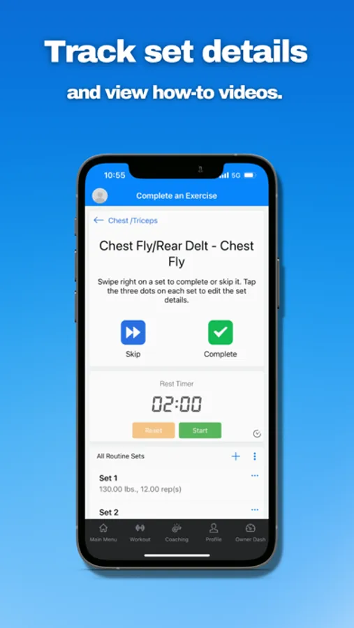 - Create goals for weight loss, muscle mass gain, and exercise maxes