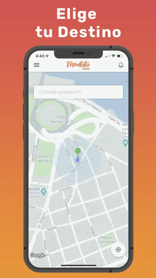 En Móntate, tu destino está al alcance de tu mano. Simplemente abra la aplicación e ingrese el lugar al que desea ir, y un chofer cercano lo ayudará a llegar allí de manera segura.