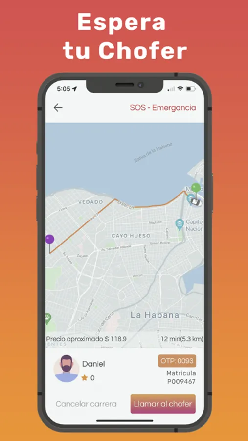 Puede llamar a las autoridades locales directamente desde la aplicación, y se mostrarán su ubicación y los detalles del viaje para que pueda compartirlos rápidamente con los servicios de emergencia.