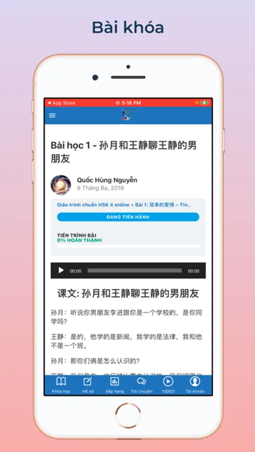 + Bài khóa: văn bản chữ Hán, phiên âm, dịch nghĩa & file ghi âm đính kèm