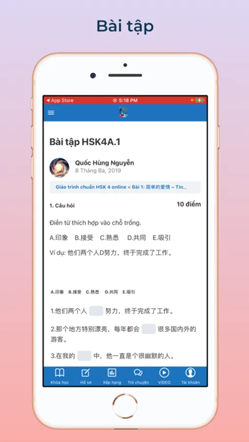 Các tính năng của HSK online - Học tiếng Trung