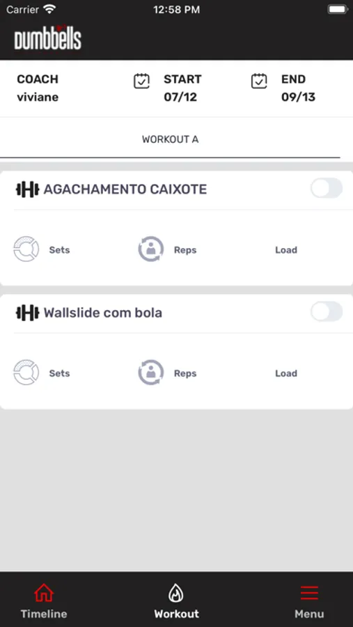 - Ficha de treino completa na tela do celular;