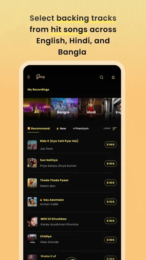 Find all the latest hits and trending music albums across all four languages on the best music recording app.