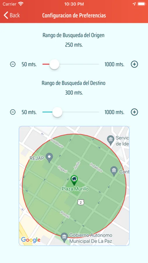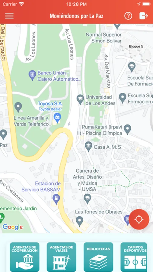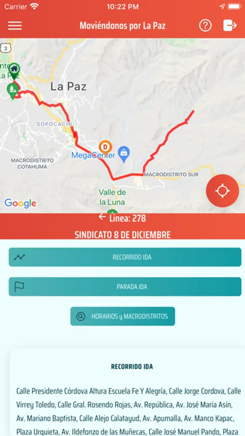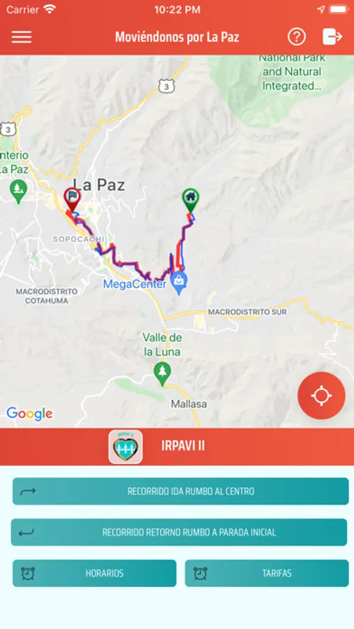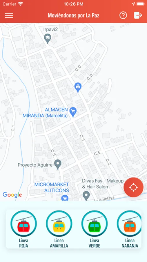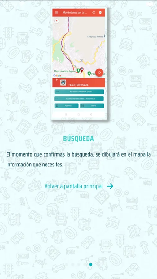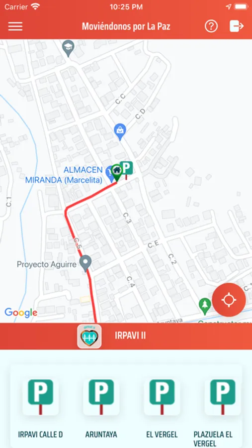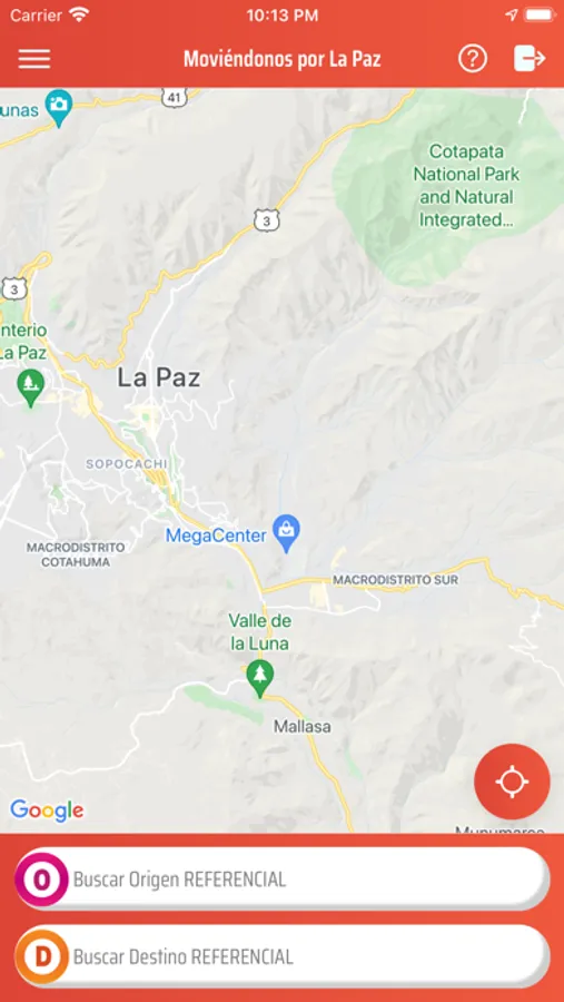 Al ingresar a la aplicación se despliega las pantallas de presentación de ayuda donde podrá conocer las bondades de la funcionalidad, un mapa de la ciudad de La Paz para la búsqueda de origen y destino que traza las rutas cercanas a una determinada ubicación, además cuenta con un menú donde podrá realizar las búsquedas personalizadas de rutas del transporte municipal o público.