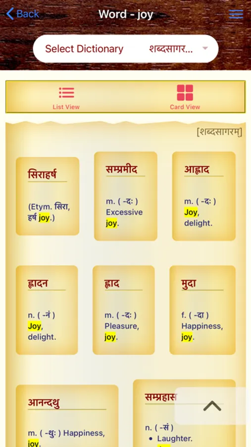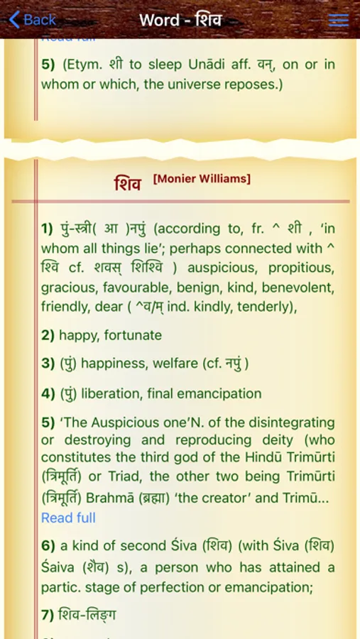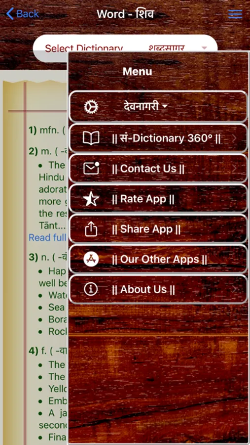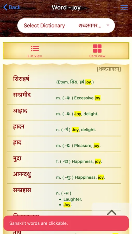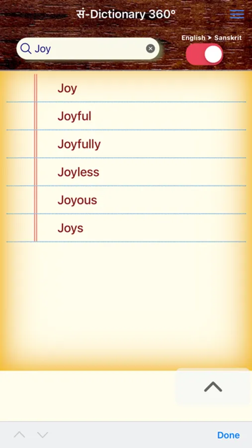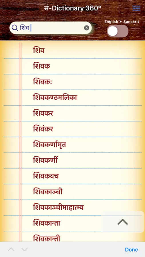 Sanskrit Dictionary 360° is a one stop Mobile App that offers users with an all round experience of Sanskrit to English Dictionary whose data is mined from different dictionaries by different authors. This app caters to all users from a Sanskrit beginner who cannot read/write Sanskrit to a scholar. This App offers,