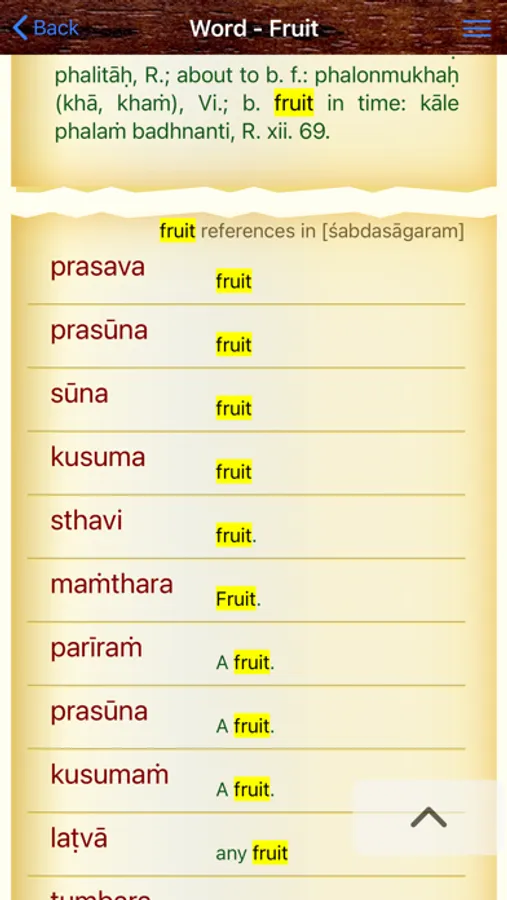 - Navigate to Sanskrit words from the English word search.