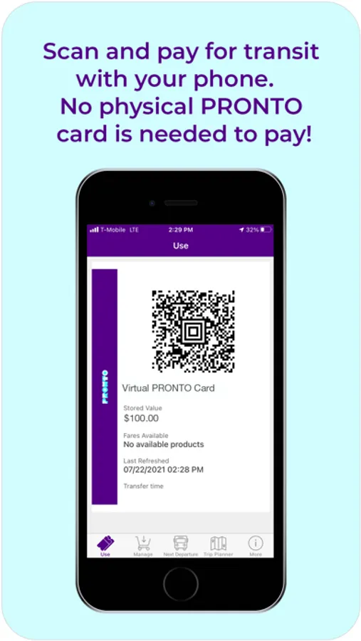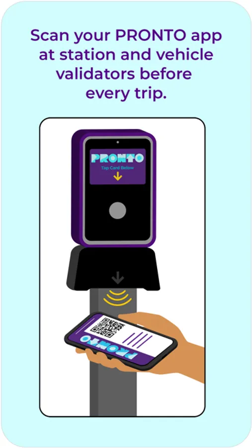 PRONTO makes buying fares for MTS and NCTD easier than ever. Add money to your PRONTO app, then scan your phone at the validator each trip you make. Our pay-as-you-go function means you always get the best fare! When using the app, hold your phone 5 to 6 inches below the validator to scan your barcode.