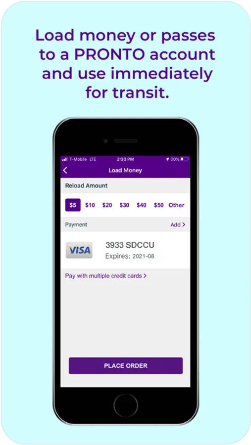 With PRONTO, you can pay-as-you-go* by adding money to your PRONTO account with a credit or debit card. Every time you scan your app, the appropriate one-way fare is deducted from your balance. Look for validators at Trolley, SPRINTER and COASTER stations, and onboard buses.