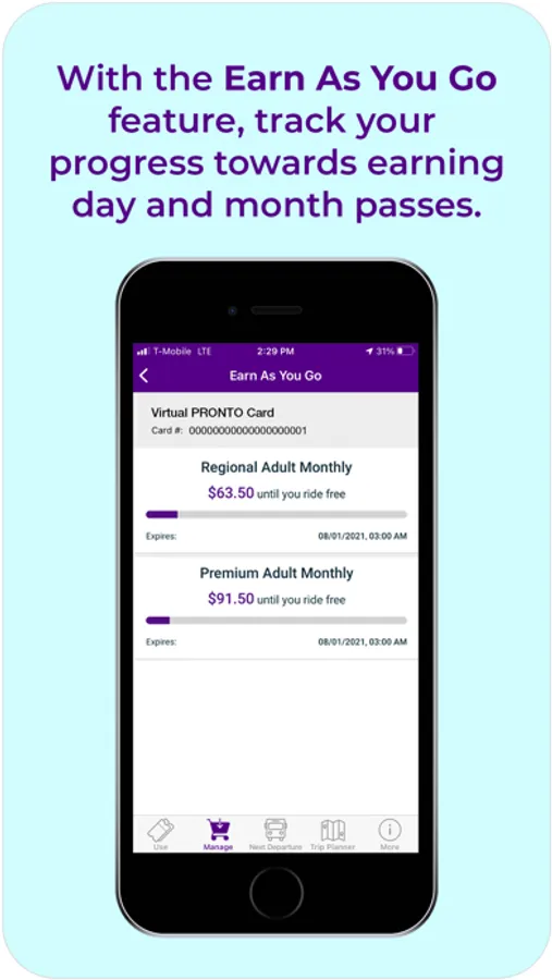You can track your progress toward a Day or Month Pass in the PRONTO app.