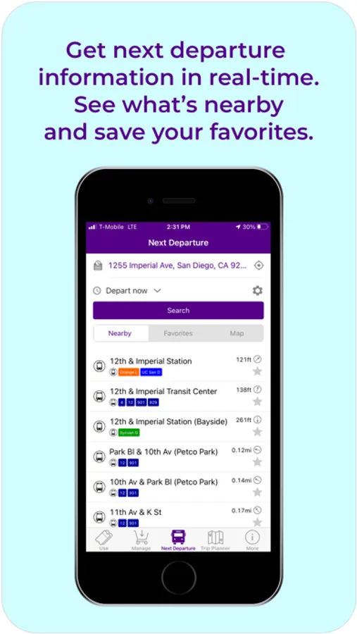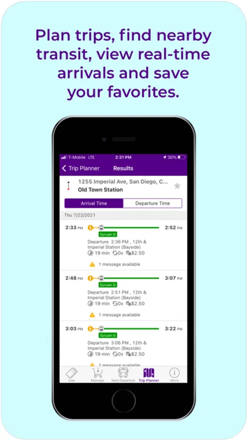 The PRONTO app can also help you plan trips, see real-time arrivals, get service statuses, save favorite stations, and find stops for San Diego County area transit so you can plan your trip around San Diego without any problems.