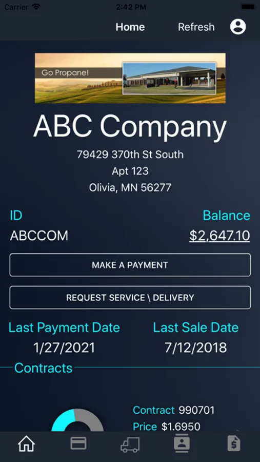 Information at your fingertips! This app gives you direct access to your account balance, location and contract information. It also gives you the ability to store and process payment and request service work and deliveries directly through the app.