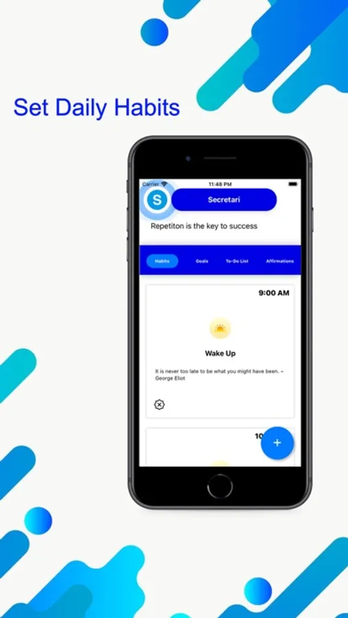 Habits are extremely important to succeed in anything in life. You are your habits. So you can only imagine how important it is to choose them wisely. Our app focuses on building great habits. Habits are different from the other three sections. Habits are to be done daily. You can set your habits on our app by choosing the best time in your daily life. Repetition of a certain action will bring definite results. And remember, it's the daily goals that will help you achieve the bigger ones.
