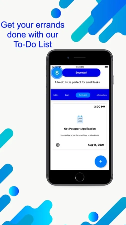 Secretari is an app that focuses on the power of positive and constructive thinking to achieve a certain goal.