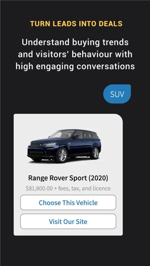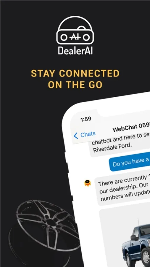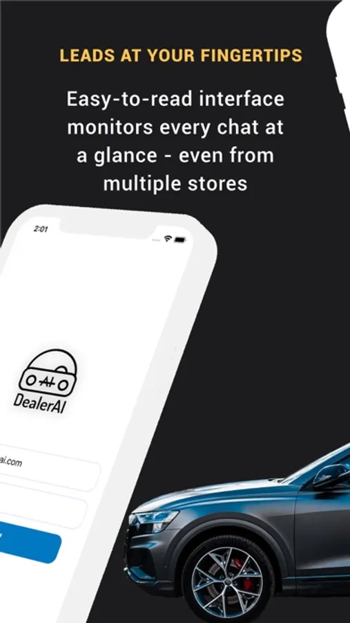 DealerAI is an intelligent and secure communication solution for car dealerships to provide online customer services through direct messaging. Dealerships can automate online vehicle inventory tracking, scheduling appointments, and responding to general inquiries. In addition, the DealerAI app allows the sales team to keep engaging with quality leads anytime, anywhere!