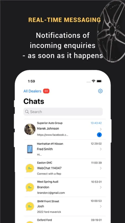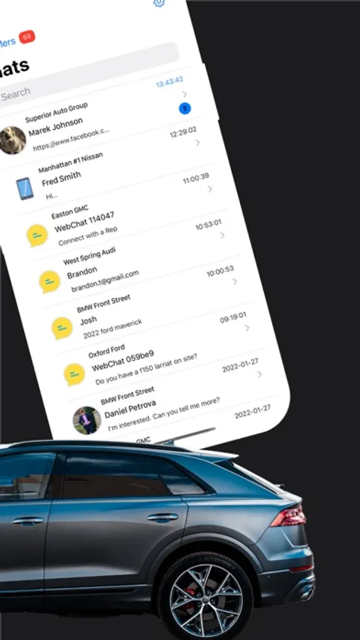An easy-to-read interface allows dealerships to oversee every chat at a glance - even from multiple stores.