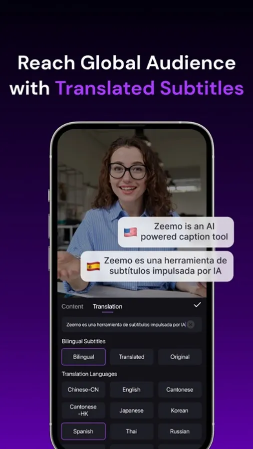 ·Bilingual Subtitle Creation – Use Zeemo to create bilingual subtitles for your videos, making them accessible to a wider audience.