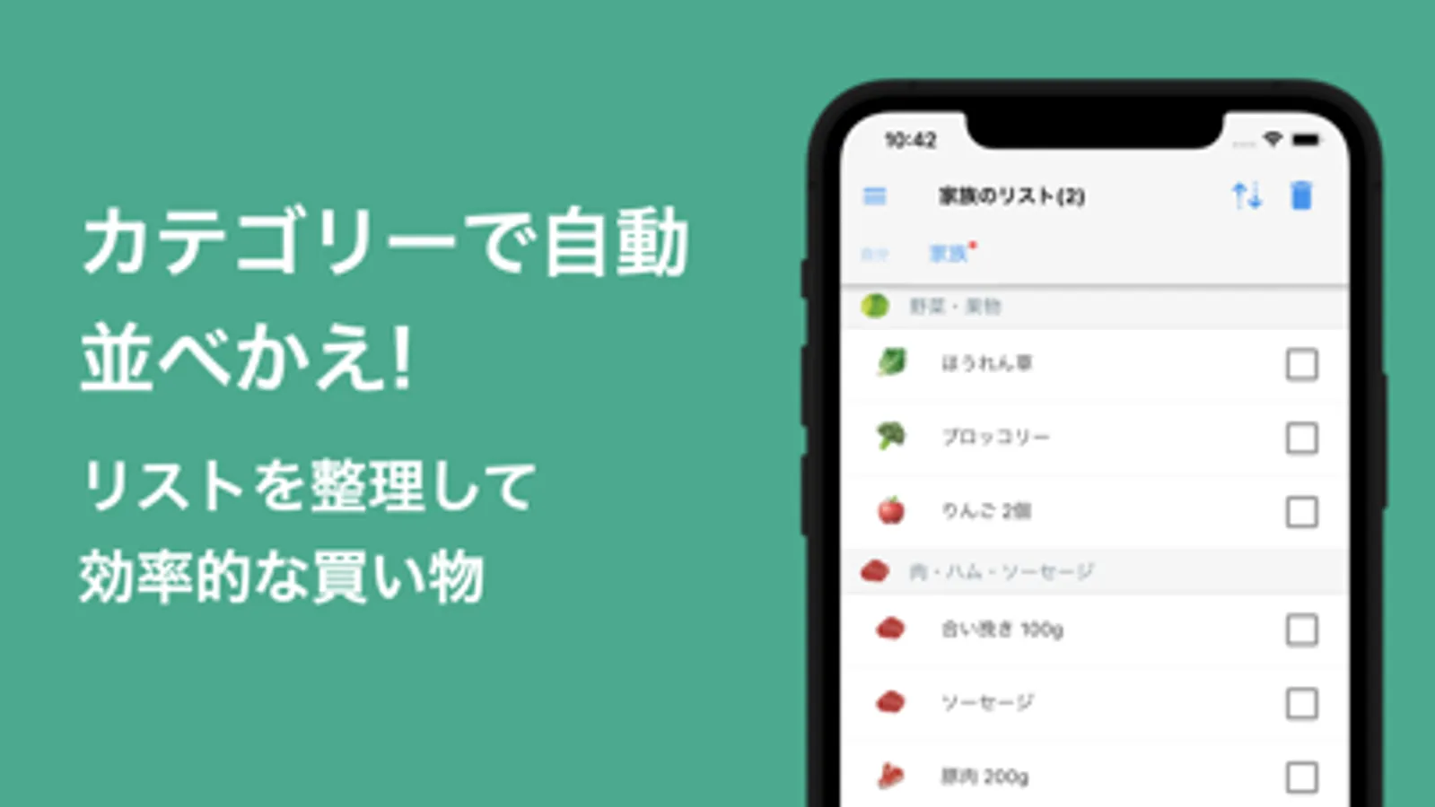 カテゴリー別に並べ替えが可能なので、「りんご、みかん」を手にしてから「アジ、鮭」の売り場に向かう、