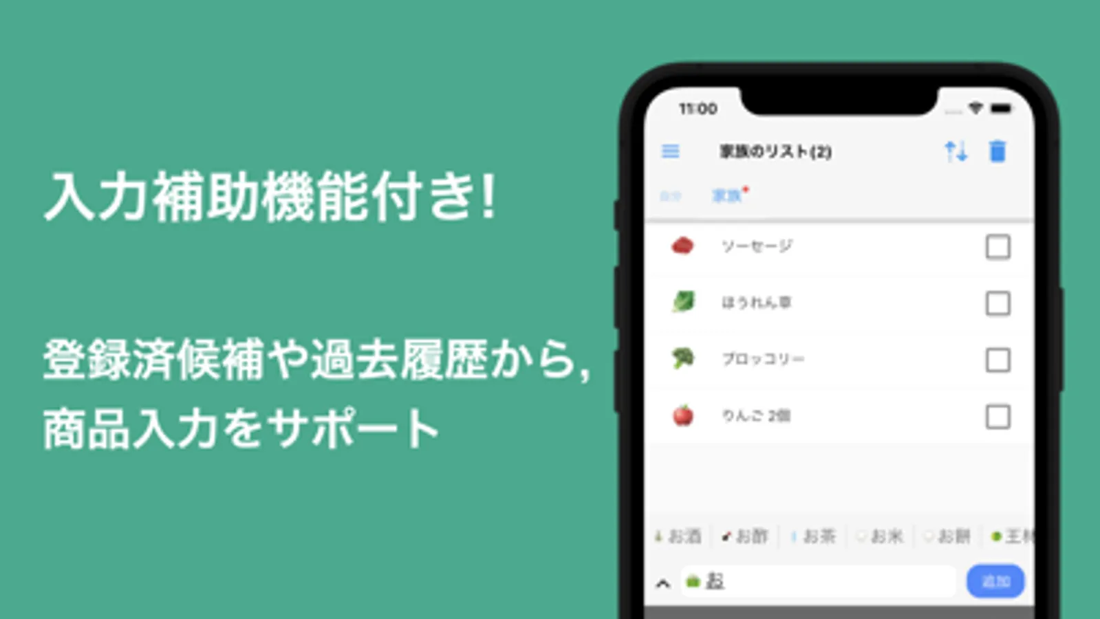 一度リストに登録した商品は次回以降予測変換の対象となって、素早く再登録が可能です。