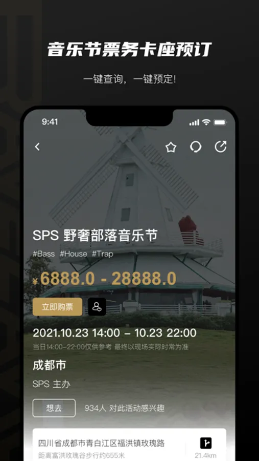 近期音乐节活动查询,往期精彩视频,照片回顾。丰富票源,灵活取票,客服全程贴心服务,配送,卡座VIP专属客服预定服务。开启你的奇妙电音之旅。