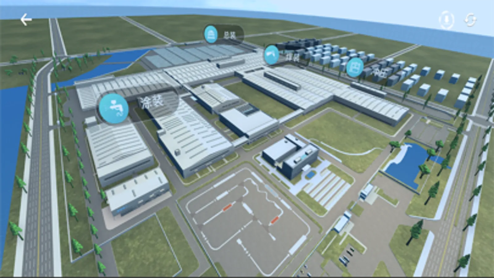 4、工厂沙盘:体验吉利长兴工厂立体沙盘,车间关键工艺工位的设备运动模型和全景视频