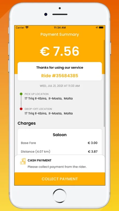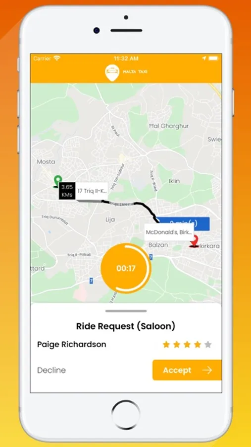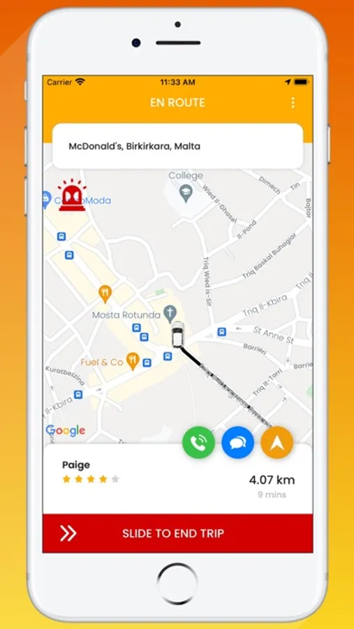 Malta Taxi Driver App allows registered drivers to receive and make trips.