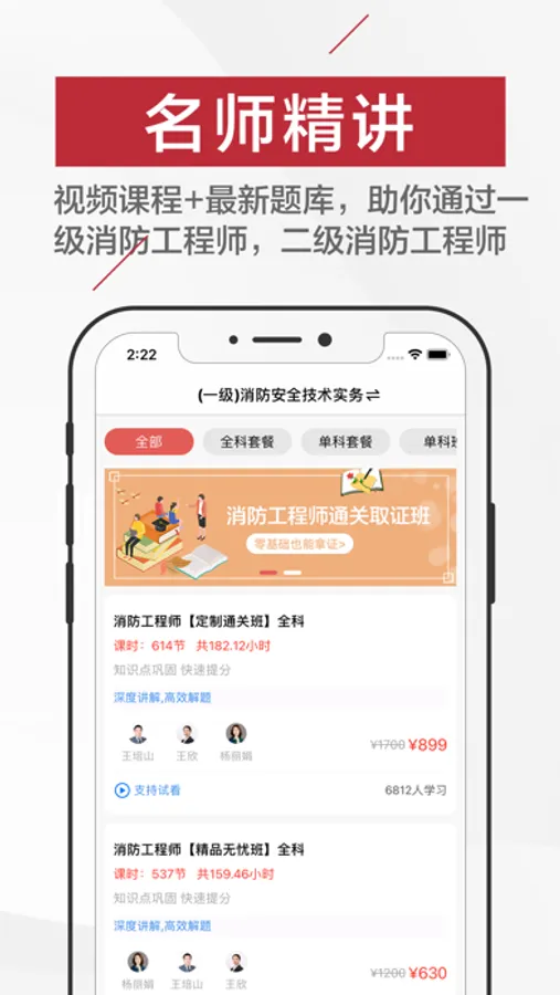 【名师精讲】视频课程+题库助你通过一级消防工程师,二级消防工程师;