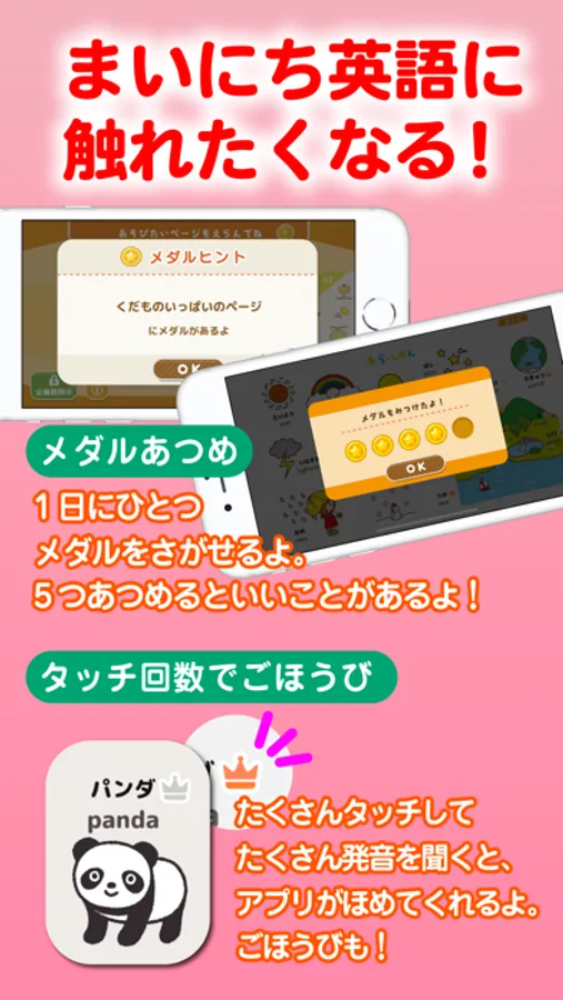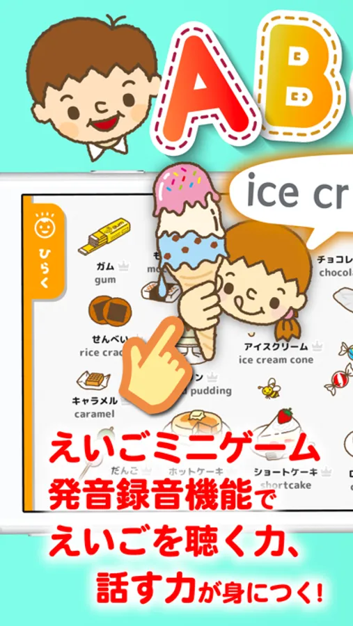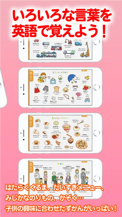 英語(えいご)教育のはじめの一歩として、ものの名前をネイティブのきれいな発音で覚えることができる子供向けの英語(えいご)知育アプリです。