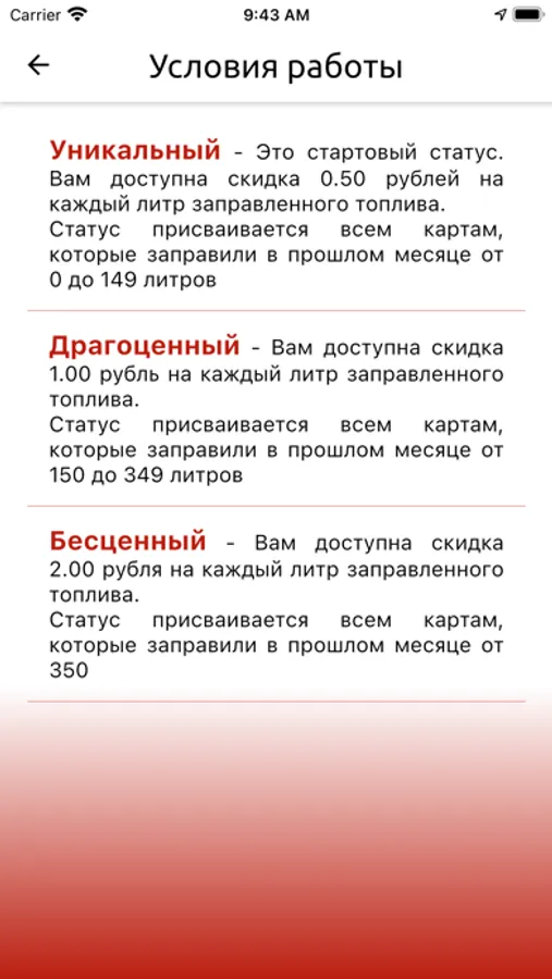 Заправляйтесь и получайте мгновенную скидку за каждый литр, размер которой зависит от количества купленного топлива в месяц