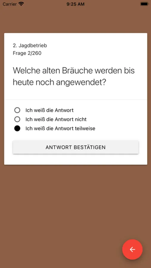 Die App behinhaltet alle Prüfungsfragen aus dem offiziellen Fragenkatalog des Landesjagdverband Mecklenburg-Vorpommern e.V. (LjvMV).