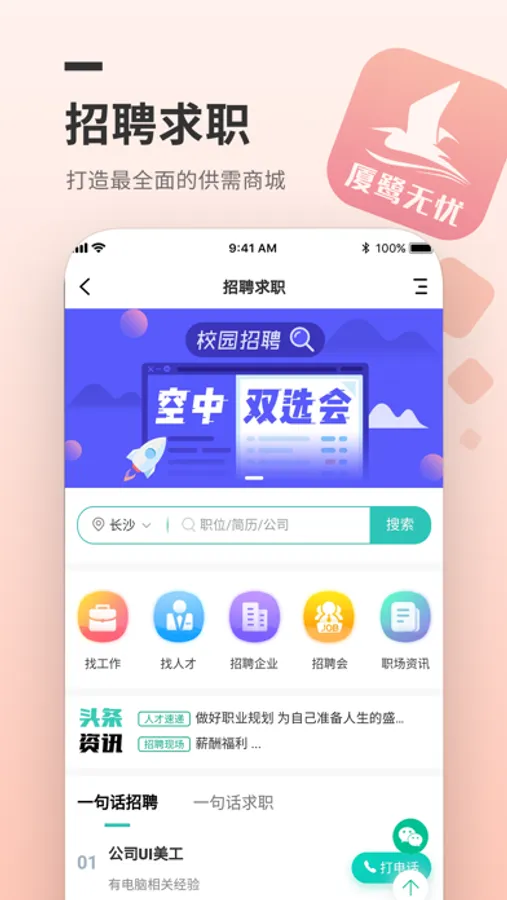 打造一流的本地生活平台,为客户提供便捷的信息交流,APP中包含了新闻、团购、商城、招聘、装修、美食、二手等信息发布和展示