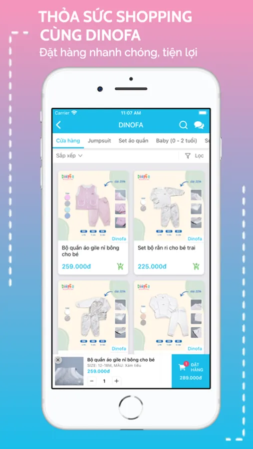 Dinofa - thương hiệu chuyên sản xuất và phân phối các sản phẩm thời trang, phụ kiện cho trẻ từ sơ sinh Made in Viet Nam. Luôn đặt yếu tố an toàn và tiện lợi lên hàng đầu, mỗi sản phẩm của Dinofa đều được chọn lọc kỹ lưỡng từ chất liệu, kiểu dáng, đảm bảo độ tinh xảo cao nhất, đem đến sự thoải mái tối đa mà vẫn thời trang cho con yêu của bạn.