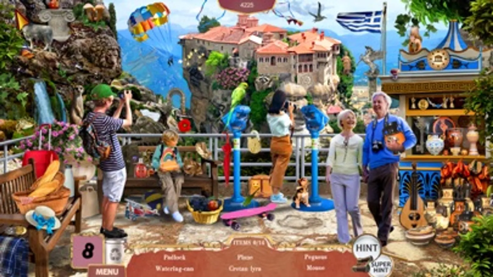 Go sightseeing in Italy on the streets of Piedmont, the Castel Nuovo, and see the Trevi Fountain to play hidden objects games. Explore Meteora monasteries, the National Museum of Athens, and the Acropolis in Greece.