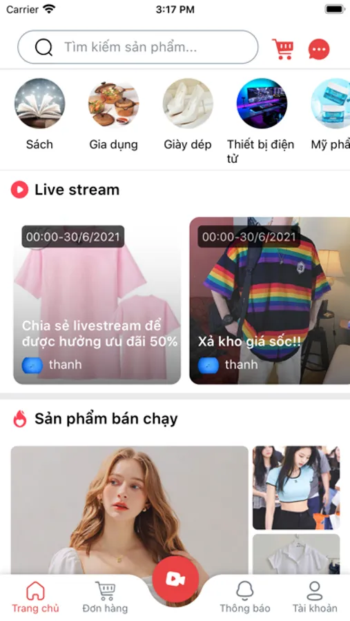 ● Xem các shop bán hàng livestream qua tính năng Live stream