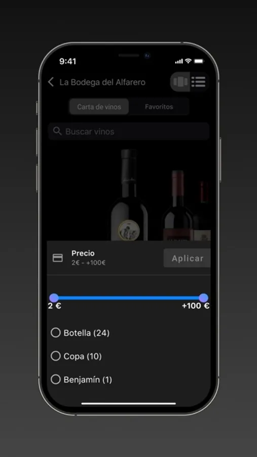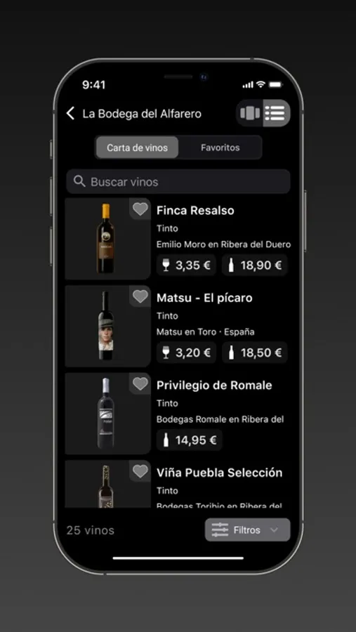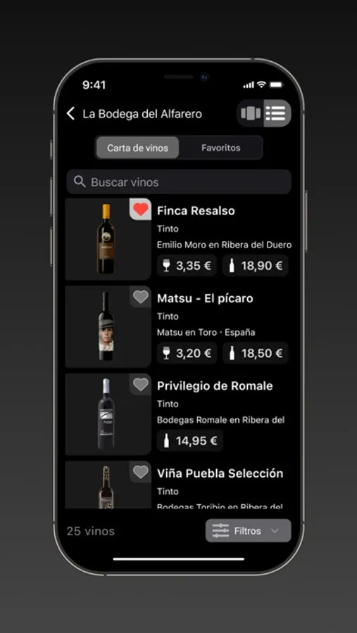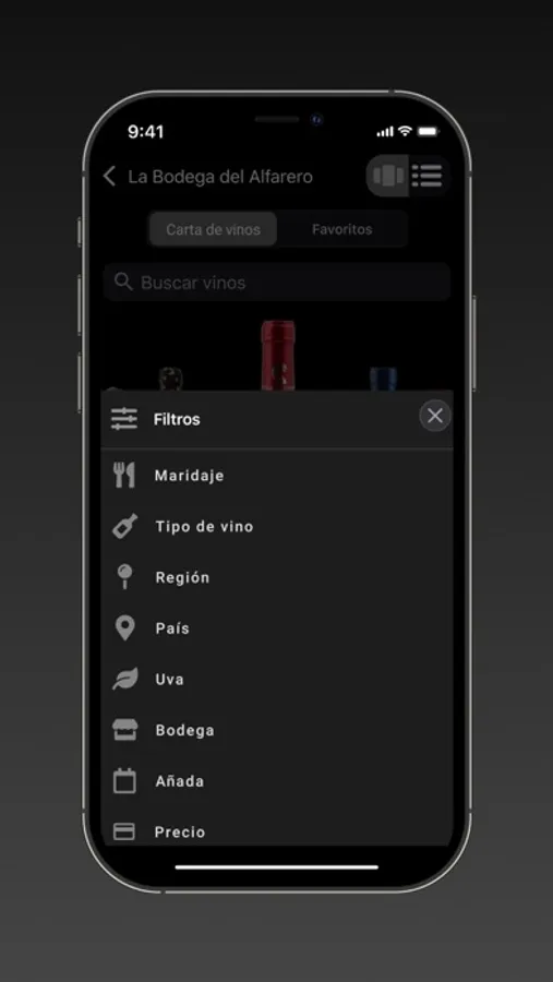Elige maridaje, añada, tipo de vino, variedad de uva, región, país, y determina el precio que quieres invertir en vino. Consulta con el responsable de vinos. Disfruta de una experiencia gastronómica óptima. ¡Disfruta Winerim!