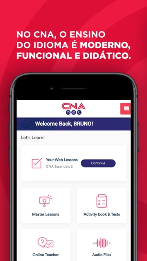O aplicativo CNA Net é a plataforma que ajuda você a aprender um novo idioma, com funções e recursos que darão um UP no seu aprendizado!