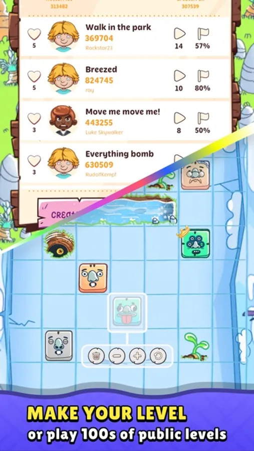 Make your own puzzles with the simple drag-and-drop level maker and share them with your friends. Participate in contests to become the best creator in the weekly leaderboard!