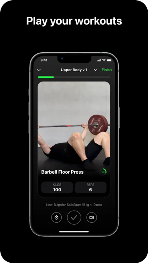 • Make it even more personalChange workout parameters like kilos, reps to adjust plan to your current progress.
