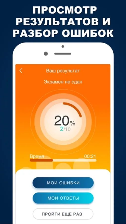 ► Работа над ошибками - тестирование по всем вопросам, в которых были допущены ошибки.
