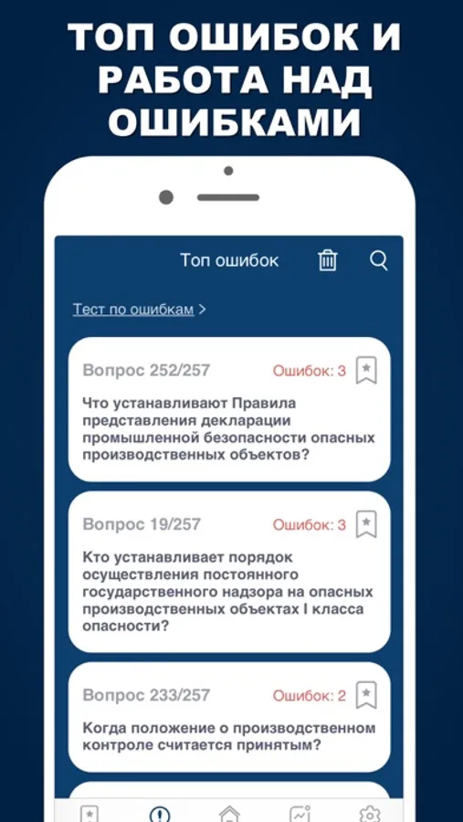 ► Топ ошибок - вопросы, в которых были допущены ошибки.