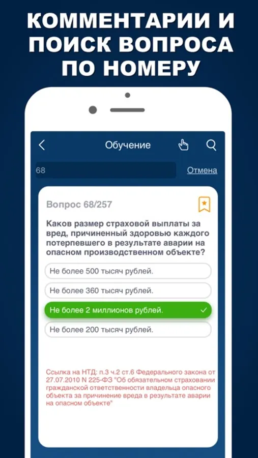 ► Поиск по номеру вопроса или по тексту вопроса в режиме Обучения.