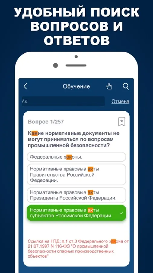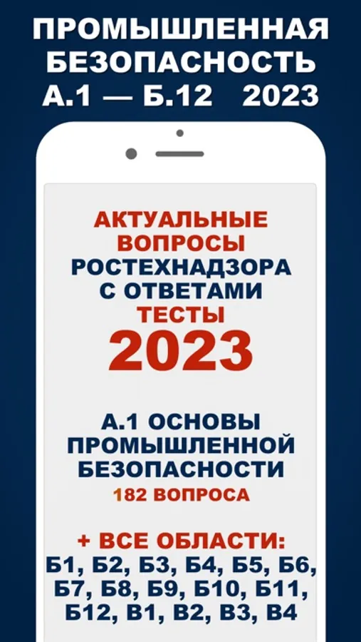 Приложение поможет Вам быстро подготовиться к экзамену по Промышленной безопасности в области аттестации «А.1 Основы промышленной безопасности», а также в областях аттестации Б1.1 - Б12.2.