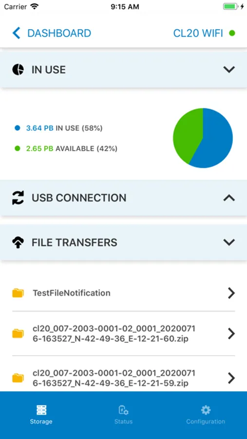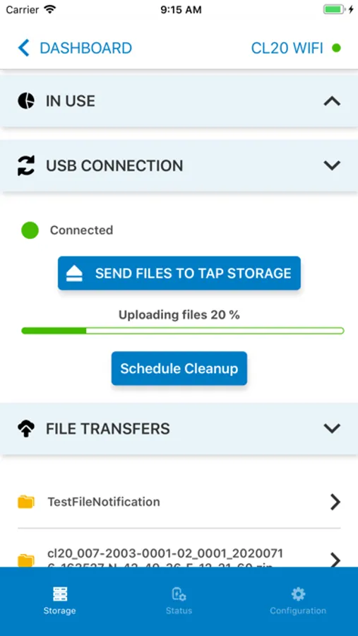 - Data transfer status