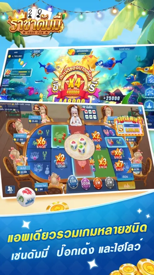 เกมส์ราชาดัมมี่เป็นเกมไพ่นิยมในประเทศไทย แอพเดียวมีเกมส์6ชนิด รวมเกมส์ไพ่ดัมมี่ ป๊อกเก้า ไพ่แคง น้ำเต้าปูปลา เกมสล็อต ยิงปลา เกมส์ทุกชนิดเล่นฟรีและโหลดฟรีด้วย ร้อยร้านคนสามารถเล่นเกมส์ด้วยกัน Enjoy เกมส์!