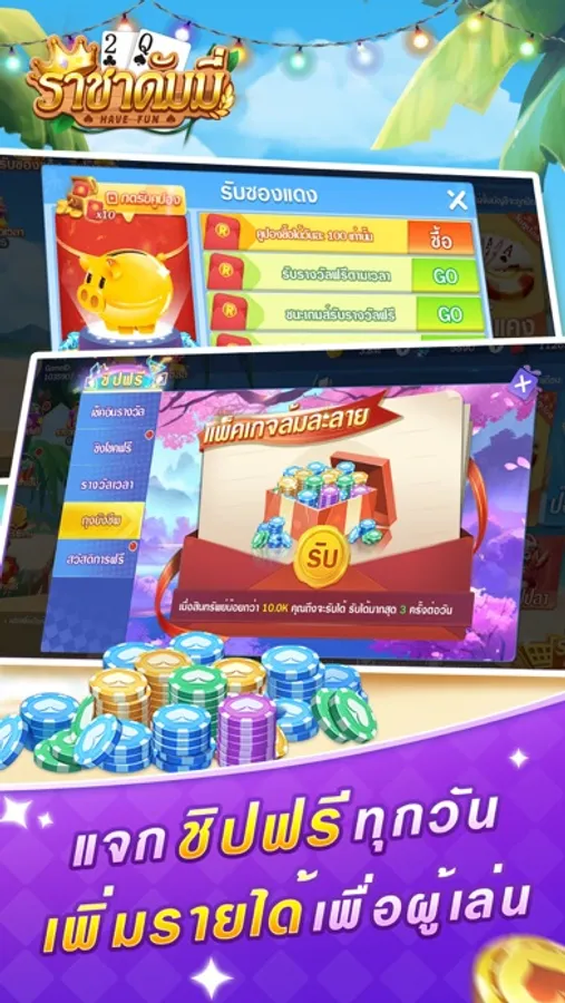 2.ล็อคอินทุกวันรับชิปฟรี รางวัลชนะและของเล่นVIP เยอะแยะรอคุณมารับ