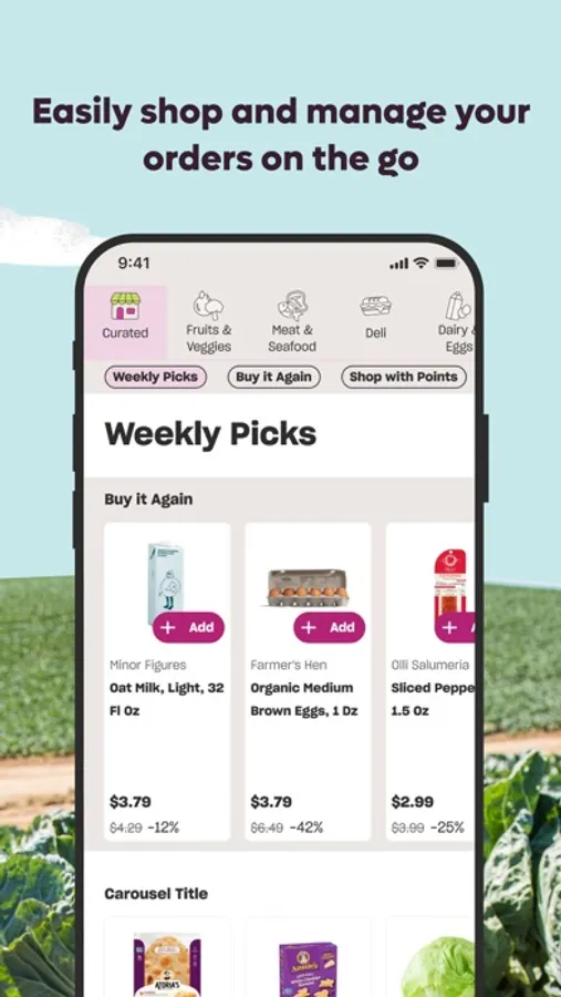 With each weekly grocery order, you can help build a less wasteful world. Choose from 500+ intentionally sourced items that help reduce food waste—and we’ll deliver them right to your door. Shop from anywhere, manage your orders on the go in the app, and get push notifications when your shopping window opens.
